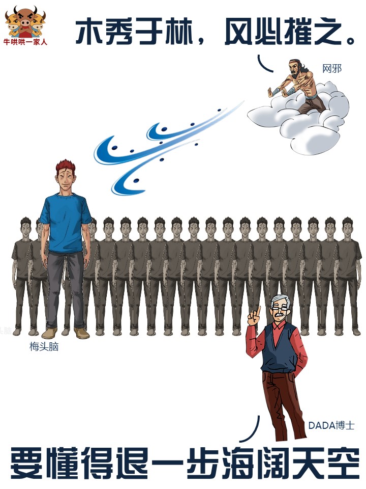 作品说明:以梅头脑木秀于林、鹤立鸡群,以致招来祸事为创意,提醒那些有才能的人,一定要注意融入团队,保护好自己。只有保护好了自己,团结了大家,才能更好的达成结果。