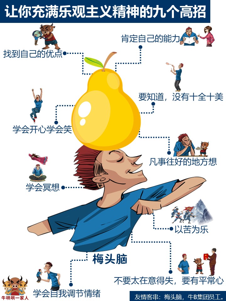 作品说明:以梅头脑顶着鸭梨(压力)为创意,告诉大家如何变得乐观起来,教会大家在压力巨大的时候,也要保持乐观心态。